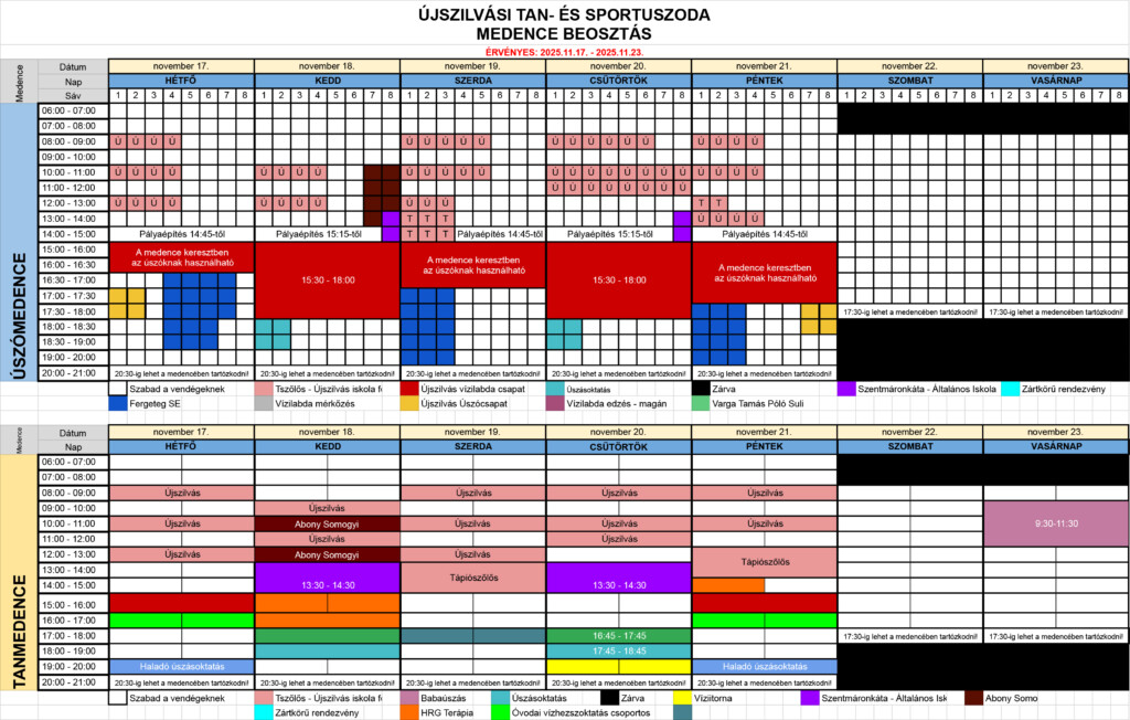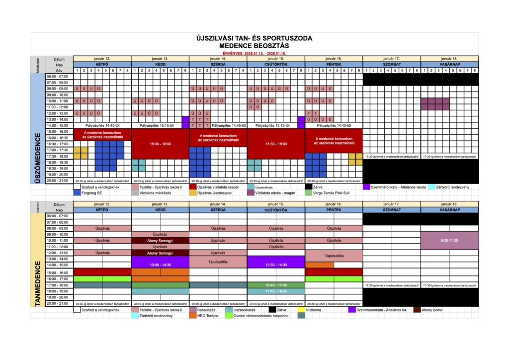 Medence beosztás